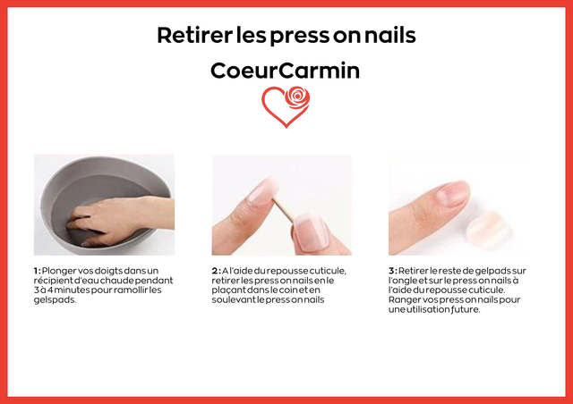 Les produits CoeurCarmin Nails étant confectionnés à la main, de légères différences de teinte, de forme ou de finition peuvent apparaître entre la photographie présentée et le produit livré.