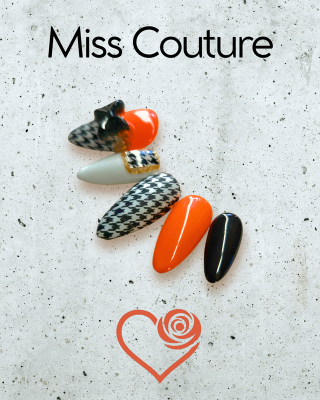 Un esprit couture au bout des doigts. Miss Couture allie délicatesse et caractère. Ces press on nails sont un accessoire de haute couture irrésistiblement raffiné. Parure créée spécialement pour cet automne, elle est disponible jusqu'au 21/12/25.